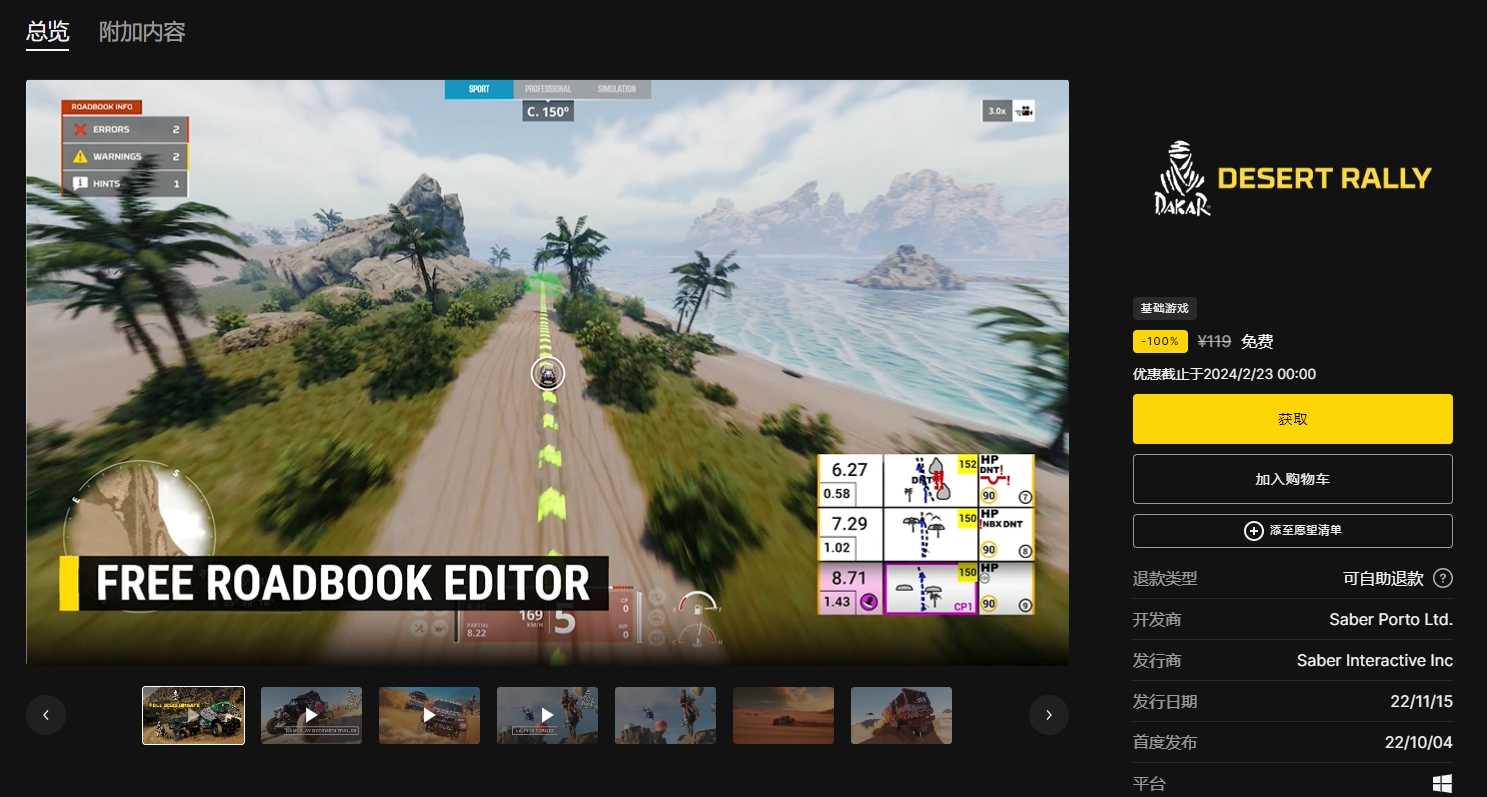 《达喀尔沙漠拉力赛》是历史上最具规模的沙漠越野赛车游戏,带您领略全球最大拉力赛的速度与激情。