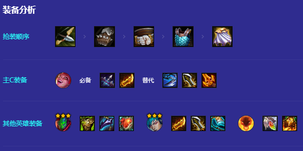 这套阵容没回复的情况下,相对比较怕对后排有威胁的阵容,例如(拉克丝、阿卡丽),及时调整对位规避伤害。