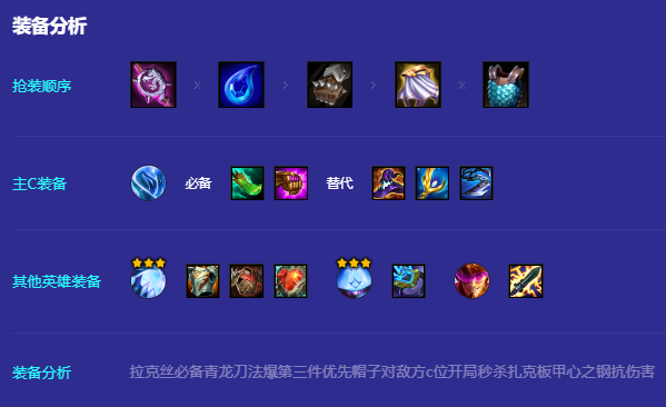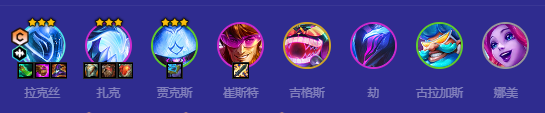 本赛季没有刺客所有拉克丝能直接大招对面后排c位非常关键3星即可2大招秒c位。